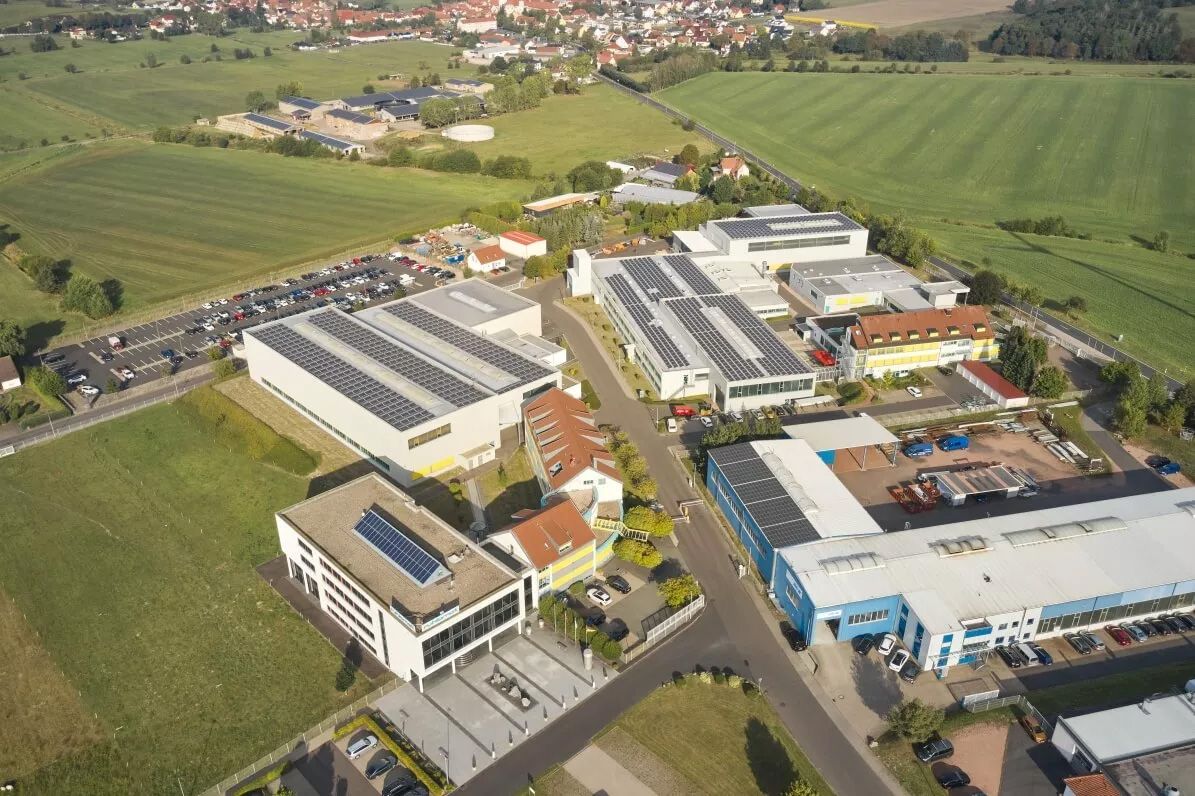 Darüber hinaus wurden bereits vor Jahren auf den Dächern unserer Fertigungs- und Montagehallen Photovoltaikanlagen installiert. Diese sichern 35 – 40 % unseres Strombedarfs. Entsprechend müssen wir lediglich einen geringen Anteil unsere Strombedarfs zukaufen. Stromüberschüsse, die wir mithilfe regenerativer Energien produzieren, aber nicht selbst nutzen können, speisen wir in das öffentliche Netz ein. Auch dadurch leisten wir einen wertvollen Beitrag zur Energiewende.